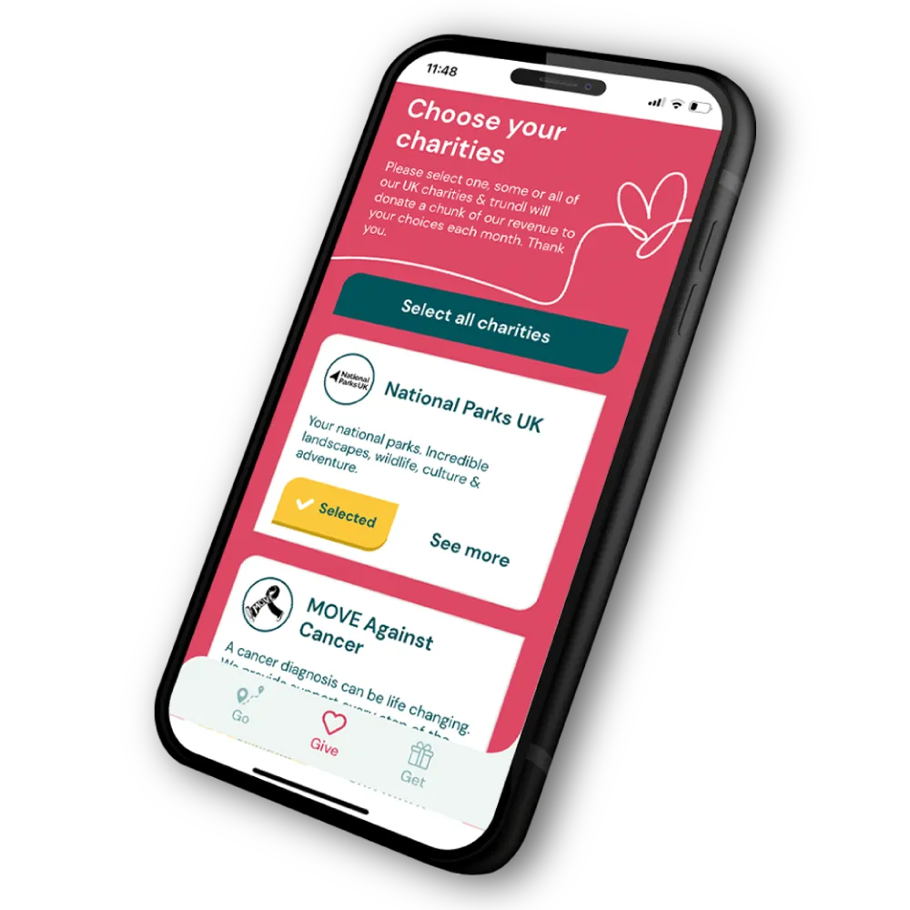 Through the app you can select one, some or all of our charity partners. Every month trundl will donate a minimum of 10% of our income towards upcoming Community trundls, split according to members’ selections.