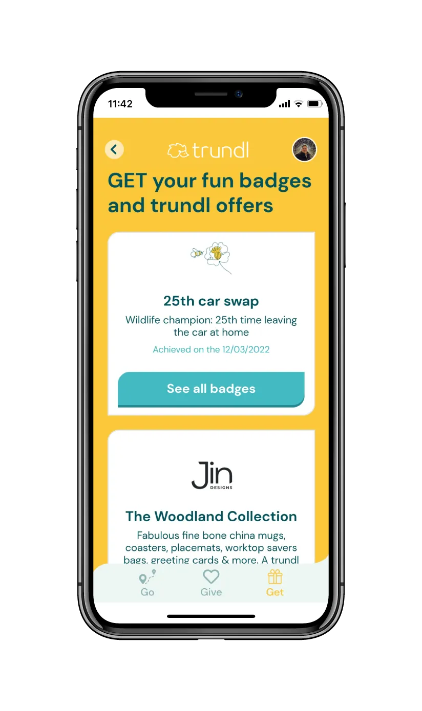 In the GET section of the trundl app you’ll see how your trundling efforts are recognised through a variety of cheering badge rewards.